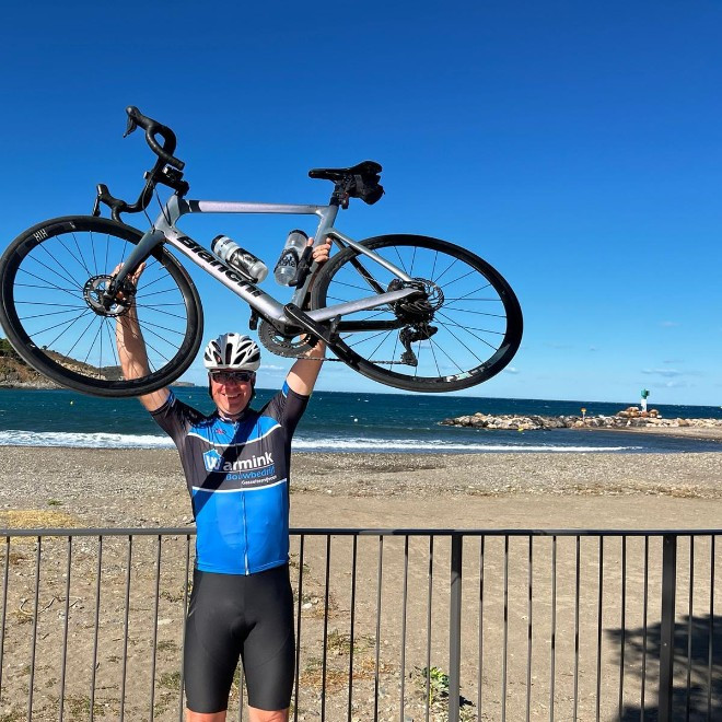 Van je lieve zoon. Heel veel succes met het fietsen. Wie als eerst boven is 😜