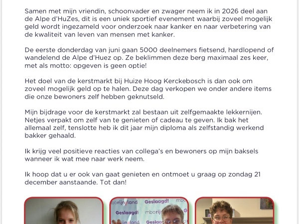 Hey lieve Lou! Vanaf de bank heb ik vanochtend ook even nog wat gekocht op de Kerstmarkt van HHK! Top initiatief en zet 'm op straks bij de Alpe d'HuZes!!