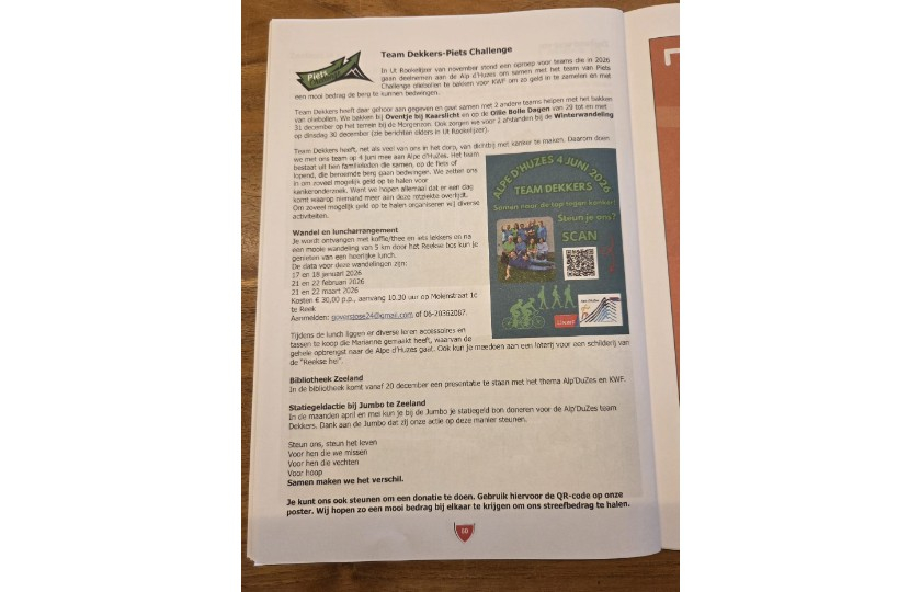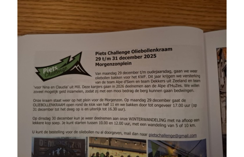 De lokale media heeft aandacht besteed aan de oliebollenactie van Piet's challenge en de deelname van Team Dekkers. Toos geeft aan waarom deze actie zo belangrijk voor ons is.