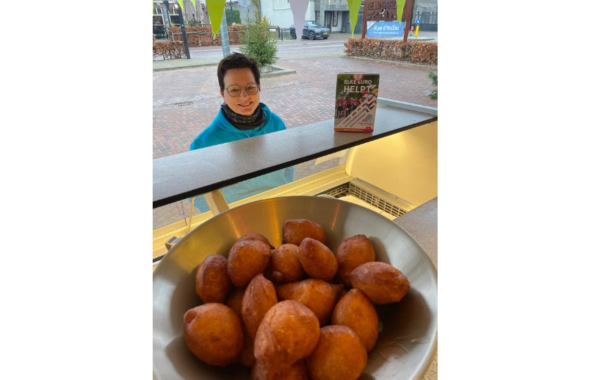 Oliebollen bakken voor Alpe d'Huzes. Lekker en met een goed doel!