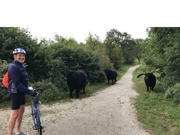 Ik op de fiets en hij als allerbeste verzorger ernaast, zoals het de jaren ervoor ook in de wielerkoersen ging. Samen op pad voor een bijzonder mooi doel.
