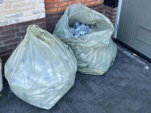 De opbrengst van 2 enorme zakken met flesjes voor statiegeld